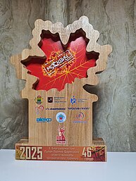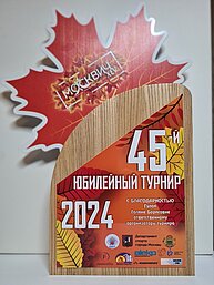 В 2020-2021 году ,, благодаря опять же Андрею Новикову был создан первый авторский кубок. За основу взят осенний лист. Выбор дерева не случаен. Это символ нашего прекрасного деревянного паркета.